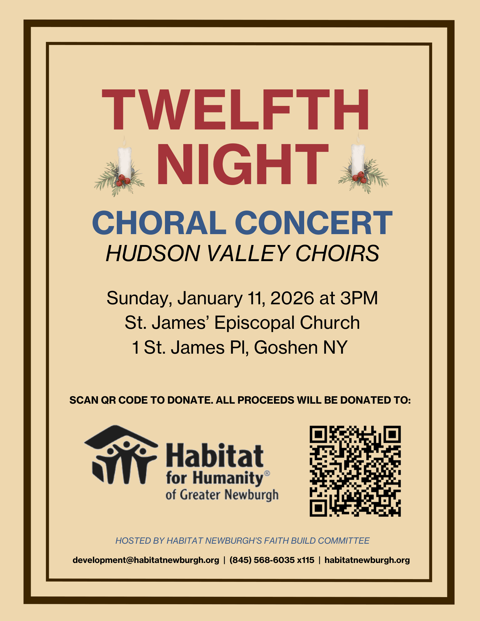 Join us for the Twelfth Night Choral Concert featuring the beautiful voices of the Hudson Valley Choirs!