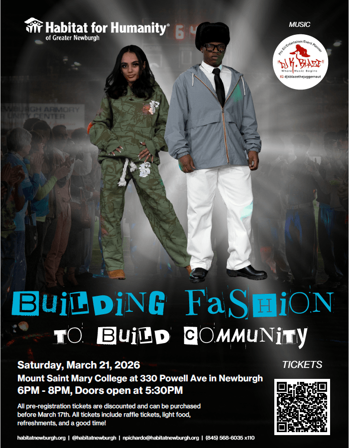 Join us on Saturday, March 21 at Mount Saint Mary College in Aquinas Hall for our Building Fashion to Build Community Fashion Show! This non-traditional runway event celebrates confidence, creativity, and connection as our models showcase outfits inspired by meaningful themes. Together, we’ll honor the homes we’ve built, the community we continue to strengthen, and the power of self-expression. It’s going to be an uplifting and memorable evening, you won’t want to miss it!